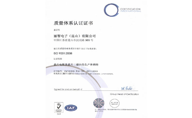 二月昆山廠取得 ISO9001認證